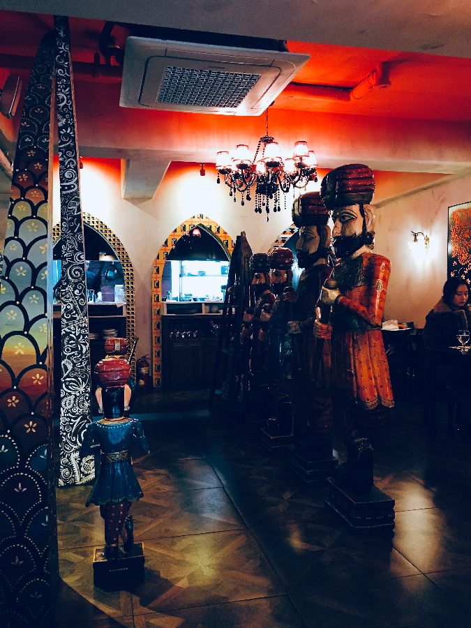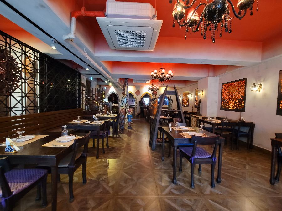 리틀인디아는 문을 열고 들어서는 순간부터 오감을 자극하는 공간입니다. 붉은색과 금색이 어우러진 내부 장식은 마치 인도 왕실에 들어선 듯한 웅장하고도 신비로운 분위기를 자아냅니다. 은은하게 퍼지는 향신료 내음은 이국적인 설렘을 더하고, 곳곳에 놓인 인도풍 소품들은 시선을 사로잡으며 공간의 깊이를 더합니다. 샹들리에의 따뜻한 조명은 아늑하고 로맨틱한 분위기를 연출하여 데이트 코스로도 손색이 없습니다. 정갈하게 세팅된 테이블과 의자들은 편안한 식사를 위한 배려가 돋보이며, 친절한 직원들의 미소는 방문객들을 따뜻하게 맞이합니다.