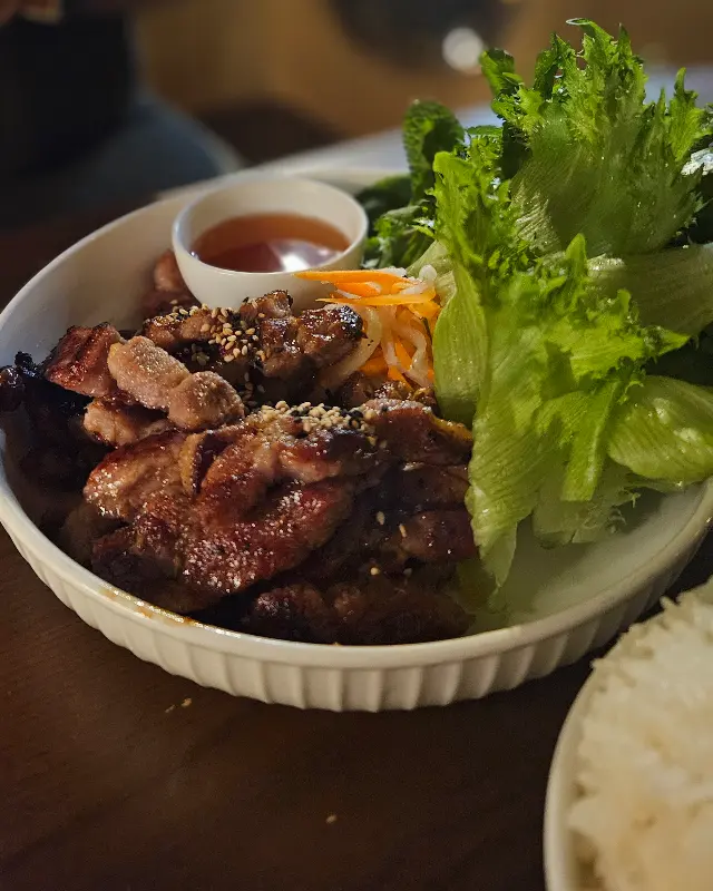 콩의 메뉴는 베트남 전통 요리를 현대적으로 재해석한 다채로운 음식들로 가득합니다. 140sek 런치 메뉴는 합리적인 가격으로 훌륭한 맛을 경험할 수 있어 인기가 높습니다. 특히 돼지고기 덮밥은 큼지막한 돼지고기와 신선한 야채가 어우러져 최고의 맛을 자랑합니다. 달콤하면서도 새콤한 맛이 입맛을 돋우는 샐러드도 곁들여져 있어 완벽한 한 끼 식사를 즐길 수 있습니다.