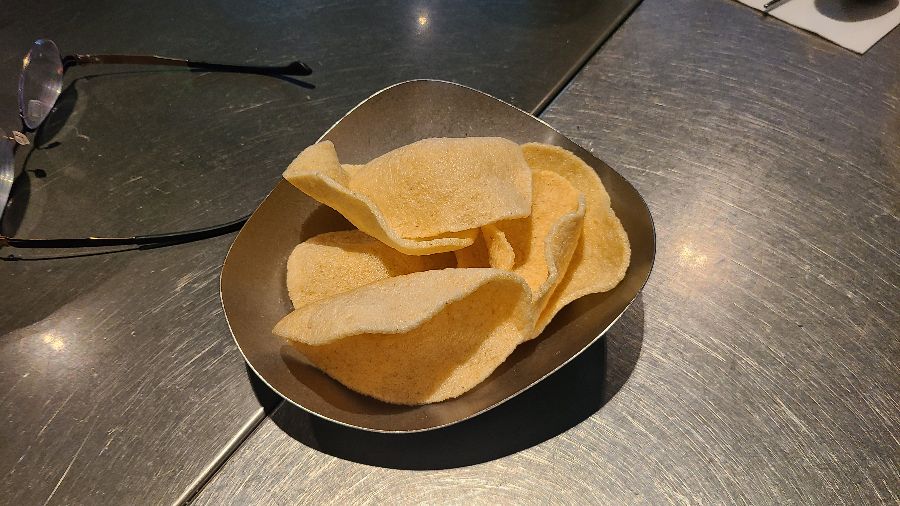 주문을 마치자마자 빠른 서비스로 웰컴 디시가 나왔습니다. 고소하고 바삭한 새우 칩이 먹음직스러운 모습으로 담겨 있었죠. 이 작은 에피타이저 하나에도 Simply Thai의 정성이 느껴지는 듯했습니다. 한 입 베어 물자마자 퍼지는 짭짤한 맛과 경쾌한 바삭함은 앞으로 나올 메인 요리에 대한 기대감을 한층 끌어올리기에 충분했습니다.