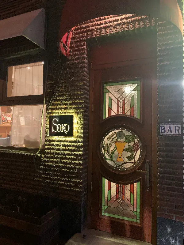 은은한 조명 아래 빛나는 “SOKO” 간판과 고풍스러운 문이 발길을 사로잡는다.