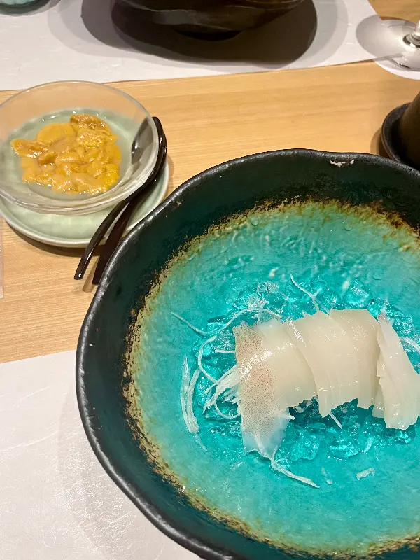 사시미와 함께 나온 홋카이도산 우니는 녹진하면서도 달콤한 맛이 일품이었습니다. 입 안에서 부드럽게 녹아내리는 우니의 풍미는 신선한 해산물만이 선사할 수 있는 최고의 경험이었습니다.