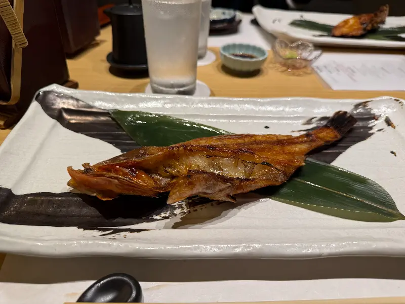 코스 요리의 하이라이트는 홋카이도의 명물인 킨키 생선구이였습니다. 겉은 바삭하고 속은 촉촉한 킨키는 기름진 풍미와 담백한 맛이 완벽하게 어우러져 있었습니다. 특히 킨키 특유의 고소한 향은 입맛을 돋우며 젓가락질을 멈출 수 없게 만들었습니다.