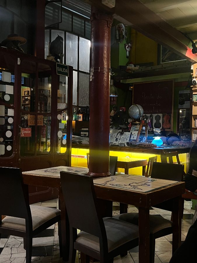레스토랑 내부는 마치 예술가의 아틀리에를 방문한 듯한 느낌을 줍니다. 벽에는 다양한 그림과 사진들이 걸려 있고, 한쪽에는 악기들이 놓여 있습니다. 은은한 조명 아래, 나무 테이블과 의자들이 아늑한 분위기를 자아냅니다. 관광객으로 북적이는 다른 레스토랑들과는 달리, 이곳은 현지인들의 단골집 같은 편안함이 느껴집니다.