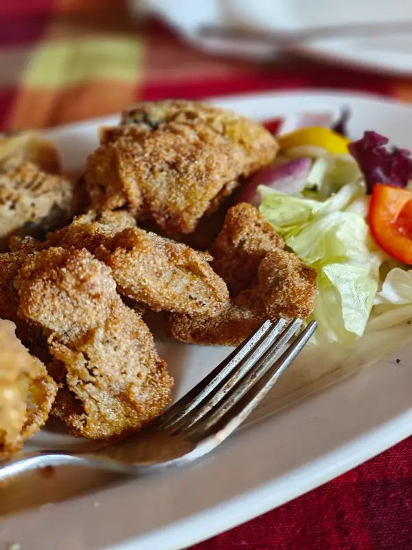 겉은 바삭하고 속은 촉촉한 생선 튀김은 신선한 야채 샐러드와 함께 제공되어 맛과 건강을 모두 잡았다.