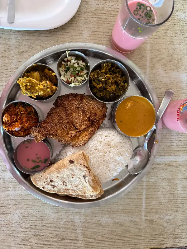 메뉴를 펼쳐 들자, 다양한 해산물 요리들이 눈길을 사로잡았습니다. 킹피쉬 탈리, 봄빌 튀김, 새우 튀김… 하나하나 다 맛보고 싶었지만, 친구의 추천을 믿고 킹피쉬 탈리를 주문했습니다. 잠시 후, 테이블 위에 놓인 킹피쉬 탈리의 모습은 정말 감탄스러웠습니다.