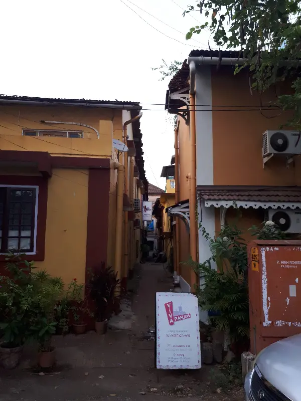 Viva Panjim으로 향하는 골목길. 좁고 오래된 건물들이 인상적이다.