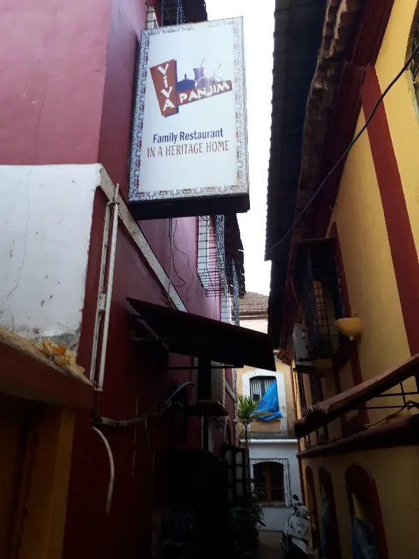 골목 안쪽에 자리잡은 Viva Panjim의 간판. 세월의 흔적이 느껴진다.