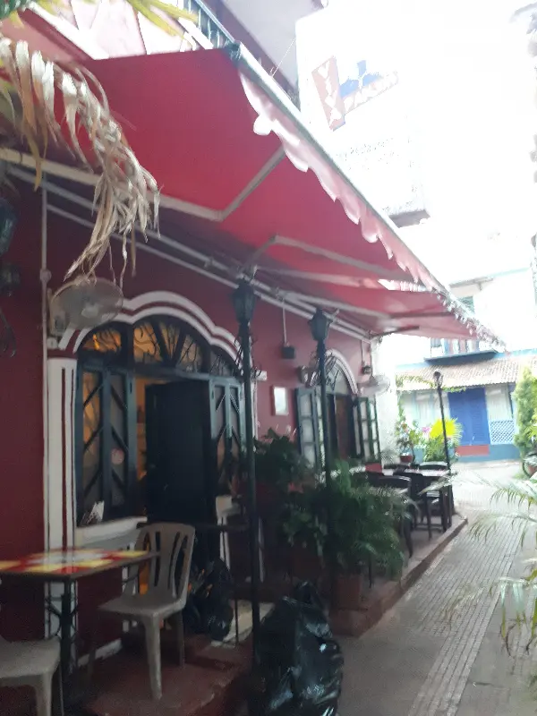 Viva Panjim. 낡은 나무 간판이 세월의 흔적을 고스란히 담고 있다. “Family Restaurant in a Heritage Home”이라는 문구가 눈에 띈다. 헤리티지 홈이라니, 어떤 이야기가 숨어 있을까? 붉은색 외벽과 아치형 창문이 인상적인 건물은, 마치 과거로 시간 여행을 떠나온 듯한 착각을 불러일으킨다. 좁은 골목길 안쪽에 위치해 있지만, 붉은색 차양과 독특한 외관 덕분에 쉽게 눈에 띈다.