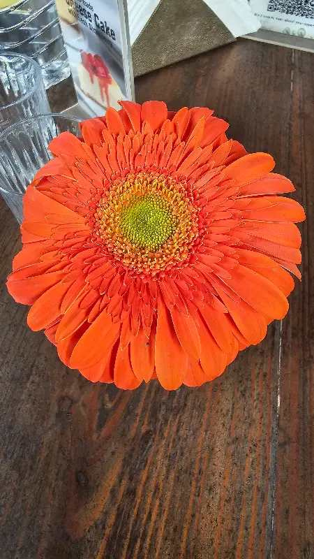 테이블 위에 놓인 홈메이드 콩포트와 붉은 꽃 한 송이가 조화롭게 어우러져, 시각적인 즐거움을 더한다.