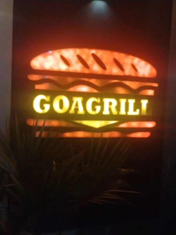 밤에 빛나는 고아 그릴의 간판은, 맛있는 음식을 찾아온 손님들을 따뜻하게 맞이한다.