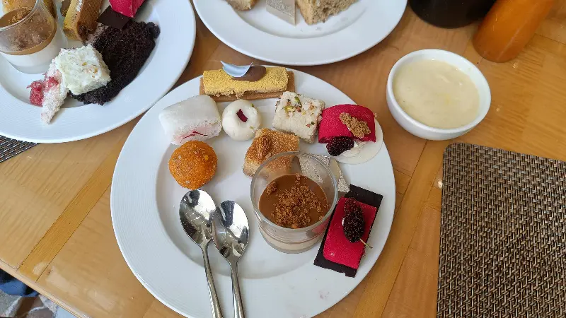 디저트 코너는 그야말로 천국이었습니다. 형형색색의 케이크와 타르트, 푸딩, 아이스크림 등이 눈을 즐겁게 했습니다. 특히, 초콜릿과 페이스트리는 부드럽고 달콤하여 입안에서 살살 녹았습니다. 다양한 종류의 과일과 견과류를 곁들여 먹으니 더욱 풍성한 맛을 느낄 수 있었습니다. 특히, 수제 초콜릿은 쌉싸름한 맛과 달콤한 맛이 조화롭게 어우러져 잊을 수 없는 맛을 선사했습니다.