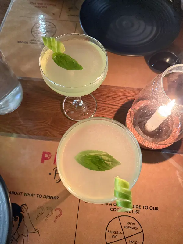 핑스 비아 호이에서는 음식뿐만 아니라 다양한 칵테일도 즐길 수 있습니다. 특히 자체 제작한 진 칵테일은 핑스 비아 호이에서만 맛볼 수 있는 특별한 메뉴입니다. 칵테일은 아름다운 색감과 섬세한 장식으로 눈길을 사로잡고, 한 모금 마시는 순간 입안 가득 퍼지는 풍미는 미각을 자극합니다.