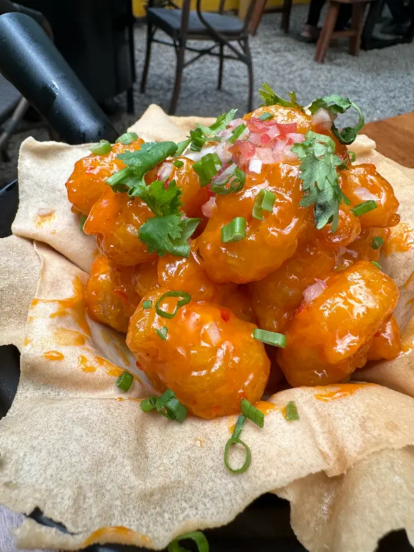 필라델피아 크림치즈 딤섬은 핑스 비아 호이의 대표 메뉴 중 하나입니다. 겉은 바삭하고 속은 촉촉한 딤섬 안에 부드러운 크림치즈가 가득 차 있어, 환상적인 맛의 조화를 선사합니다. 한 입 베어 무는 순간, 입안 가득 퍼지는 크림치즈의 풍미는 잊을 수 없는 미식 경험을 선사합니다. 딤섬 위에 살짝 올려진 꽃 장식은 시각적인 아름다움까지 더합니다.