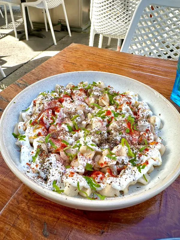 다음으로 나온 만티는 터키식 만두 요리입니다. 앙증맞은 크기의 만두는 부드러운 식감을 자랑하고, 요거트 소스와 함께 먹으니, 상큼하면서도 고소한 맛이 일품입니다. 특히, 만티 위에 뿌려진 향신료는 풍미를 더욱 깊게 만들어줍니다. 리뷰에서도 극찬한 이유를 알 것 같습니다.