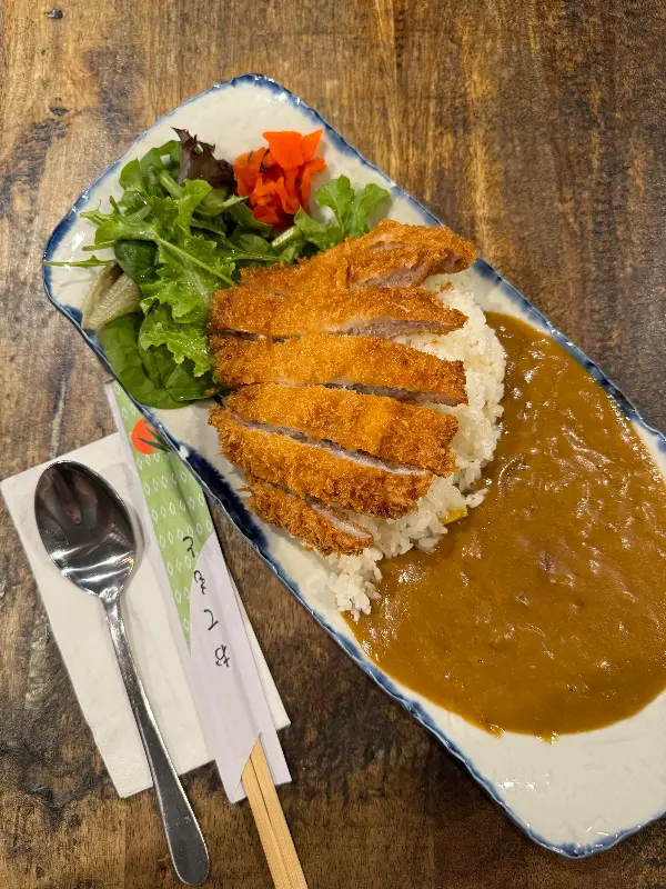 주문한 카츠 카레가 테이블에 놓였다. 따뜻한 김이 모락모락 피어오르는 카레와, 갓 튀겨져 바삭한 돈까스의 조화로운 모습에 감탄했다. 돈까스는 겉은 바삭하고 속은 촉촉했으며, 고소한 풍미가 입안 가득 퍼져 나갔다. 카레는 깊고 진한 맛이 일품이었고, 밥과 함께 먹으니 환상의 궁합을 자랑했다. 샐러드와 함께 곁들여 먹으니 느끼함도 잡아주고, 신선함까지 더해져 더욱 만족스러웠다.