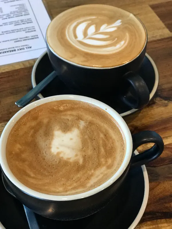 주문한 커피가 먼저 나왔습니다. 저는 플랫 화이트, 파트너는 롱 블랙을 주문했습니다. 사진(Image 1)에서처럼 플랫 화이트는 아름다운 라떼 아트가 인상적이었습니다. 커피는 진하고 깊은 풍미가 느껴졌습니다. 롱 블랙 또한 쌉쌀하면서도 깔끔한 맛이 일품이었습니다.