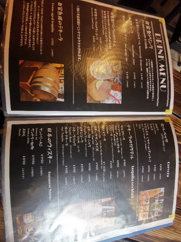 다양한 멕시코 요리와 술이 준비된 메뉴판. ‘자가 숙성 데킬라’가 눈길을 사로잡는다.