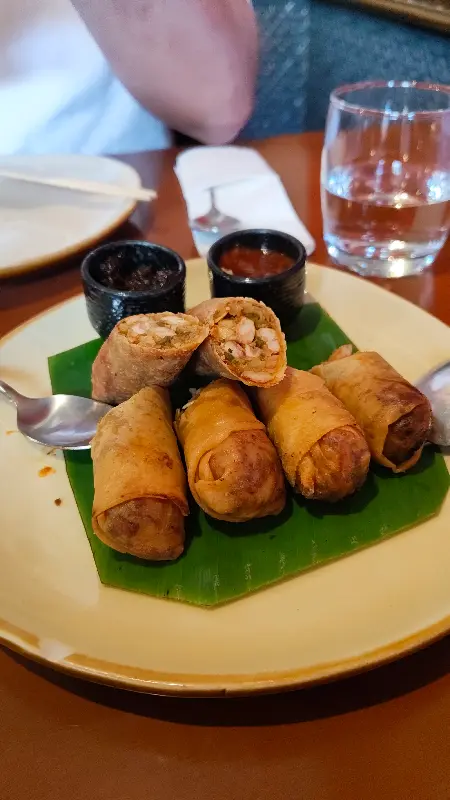 자리에 앉자마자 서비스로 제공된 새우 크래커는 바삭한 식감과 함께 은은한 새우 향이 입안 가득 퍼져 나갔습니다. 곁들여진 두 가지 소스는 매콤함과 달콤함을 더해 크래커의 맛을 한층 끌어올렸습니다. 메뉴를 기다리는 동안, 크래커를 하나씩 집어 먹으며 친구와 함께 어떤 음식을 맛볼지 행복한 고민에 빠졌습니다.