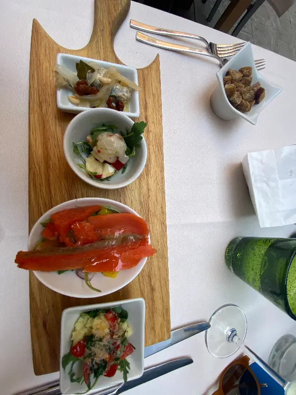 주인 아주머니의 추천대로 안티파스티를 주문했다. 잠시 후, 작은 접시에 예쁘게 담긴 안티파스티들이 테이블 위에 놓였다. 호박 무스 위에 새우가 올라간 요리, 야채 라구 위에 올려진 요리 등, 현지 식재료를 사용한 다채로운 메뉴 구성이 돋보였다. 마치 작은 예술 작품을 감상하는 듯한 기분이었다.