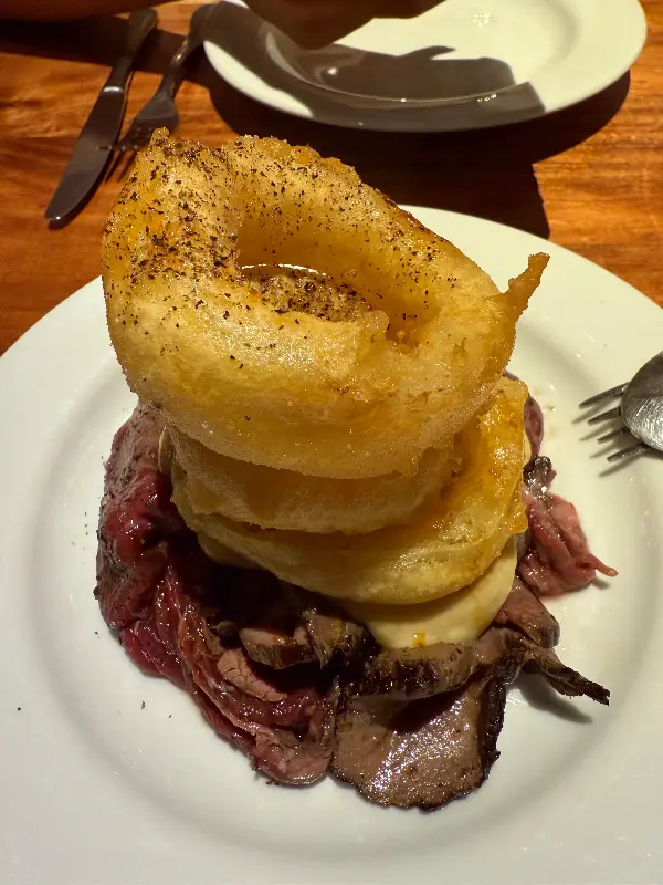 섬세하게 뿌려진 겨자씨가 인상적인 스테이크 요리. 겉은 바삭하고 속은 촉촉하게 구워진 스테이크는 입안에서 부드럽게 녹아내립니다.