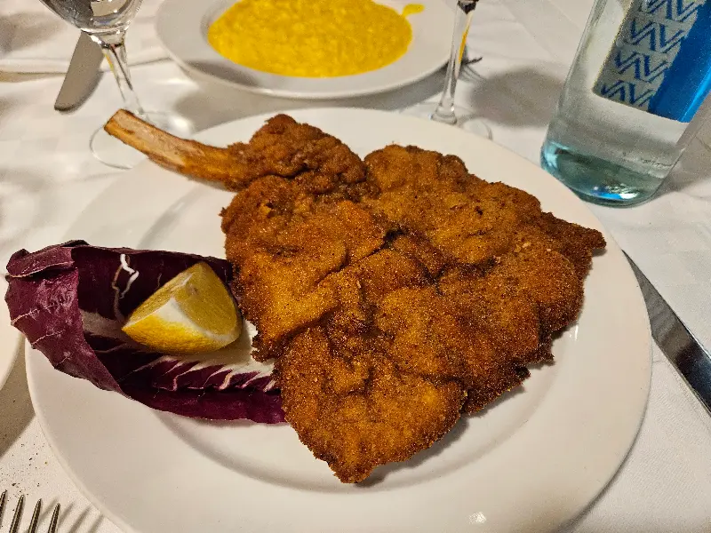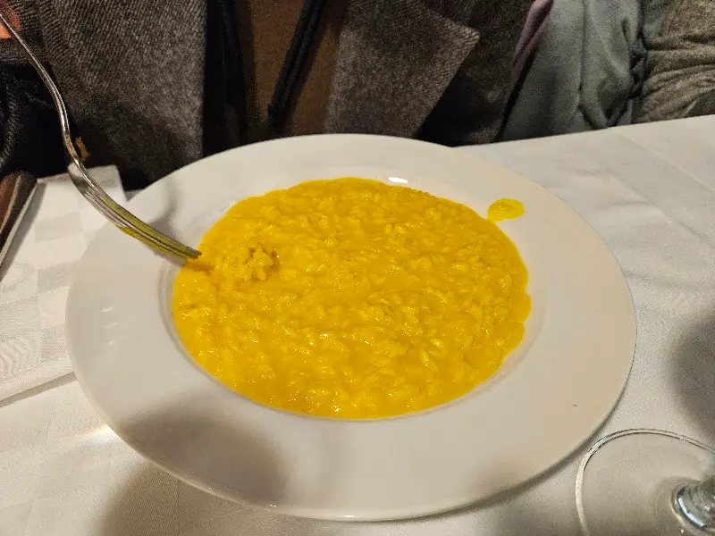 자리에 앉아 메뉴판을 펼쳐 들었다. 온통 이탈리아어로만 적혀 있는 메뉴판은 마치 외국어 시험지를 마주한 듯한 긴장감을 안겨주었다. 하지만 사전에 한국인 이탈리아 가이드 유튜브 채널을 참고하여 미리 메뉴를 생각해둔 덕분에 큰 어려움 없이 주문할 수 있었다. 많은 이들이 오소부코와 커틀릿을 즐겨 먹는다는 정보를 입수, 오소부코 리조또와 까르보나라를 주문했다. 옆 테이블에서 풍겨오는 커틀릿의 고소한 향에 잠시 흔들렸지만, 다음을 기약하며 애써 마음을 다잡았다.