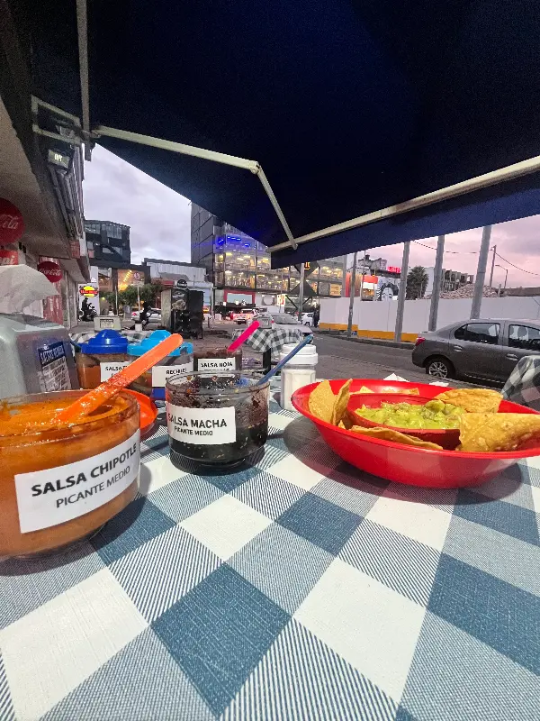 문을 열고 들어서자, 작지만 활기찬 공간이 눈에 들어왔다. 테이블은 파란색과 흰색 체크무늬 식탁보로 덮여 있었고, 벽에는 멕시코를 상징하는 듯한 그림들이 걸려 있었다.