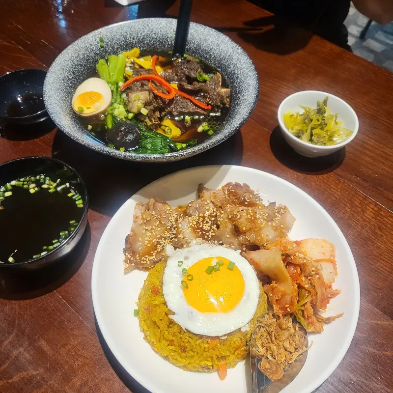 갈비국수와 볶음밥, 그리고 맛깔스러운 김치의 환상적인 조합!