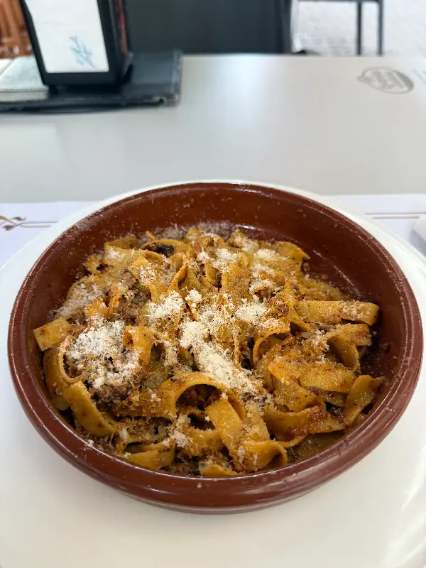 따뜻하게 데워진 옹기 그릇에 담겨 나온 파스타는 보기에도 먹음직스러웠다. 윤기가 자르르 흐르는 면발 위에는 파르미지아노 레지아노 치즈가 듬뿍 뿌려져 있어 고소한 풍미를 더했다. 포크로 면을 돌돌 말아 한 입 가득 넣으니, 입안에서 다채로운 맛의 향연이 펼쳐졌다. 짭짤하면서도 고소하고, 깊고 진한 풍미가 어우러져 혀끝을 황홀하게 만들었다.
