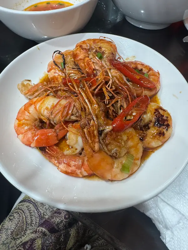 특히 눈길을 끄는 것은, 윤기가 좔좔 흐르는 새우 요리였다. 붉은 고추가 살짝 올라간 것이, 매콤하면서도 달콤한 맛을 기대하게 했다. 한 입 베어 무니, 탱글탱글한 새우살이 입안 가득 퍼지고, 매콤달콤한 소스가 혀를 감싼다. 신선한 재료와 정성 가득한 손맛이 느껴지는 맛이다.