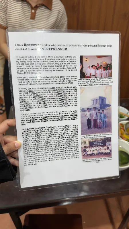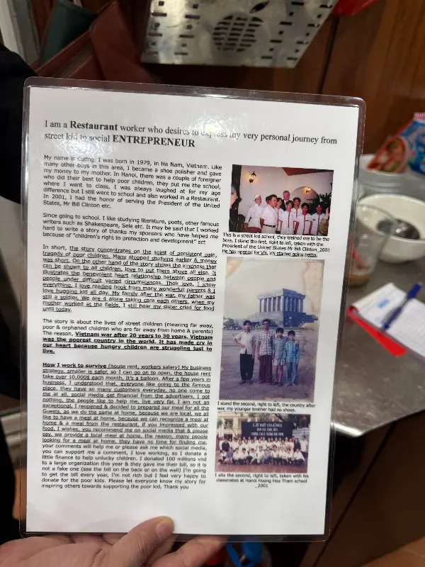 하노이의 수많은 식당들 중에서, 이곳이 특별한 이유는 무엇일까? 그것은 바로, 맛있는 음식과 친절한 서비스, 그리고 감동적인 이야기가 어우러진, 특별한 경험을 선사하기 때문이다. 좁고 비좁아 보이는 공간이지만, 그 안에는 따뜻한 마음과 정(情)이 가득하다. 하노이를 방문하는 여행자들에게, 이곳은 단순한 식당이 아닌, 하노이의 문화와 사람들을 만날 수 있는 특별한 공간이 될 것이다.