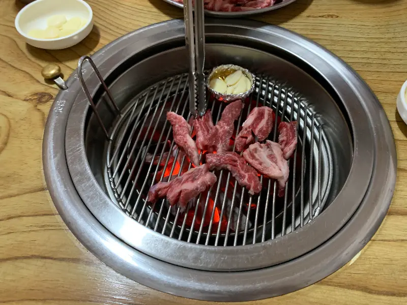 문을 열고 들어서자, 마치 시간을 거슬러 올라간 듯한 정겨운 풍경이 펼쳐진다. 번쩍거리는 현대적인 인테리어는 아니지만, 오히려 그 세월의 흔적이 편안함을 더한다. 테이블마다 놓인 숯불 화로와 연통, 벽에 걸린 빛바랜 사진들이 이곳의 역사를 말해주는 듯하다. 왁자지껄한 손님들의 웃음소리가 활기를 더하고, 코를 자극하는 고소한 냄새가 식욕을 돋운다.