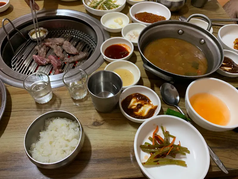 갈비살을 어느 정도 먹고 나면, 시원한 된장찌개와 잔치국수를 주문해야 한다. 뜨끈한 된장찌개는 고기의 느끼함을 잡아주고, 깔끔한 잔치국수는 입안을 개운하게 마무리해준다. 특히, 된장찌개에 남은 갈비살을 잘게 잘라 넣어 밥과 함께 비벼 먹으면, 그야말로 꿀맛이다.