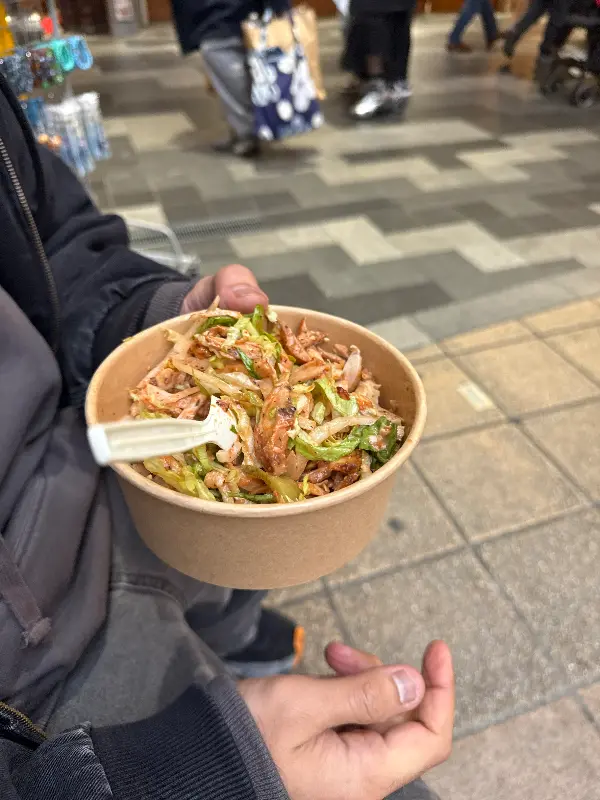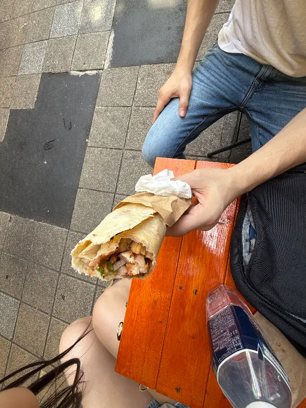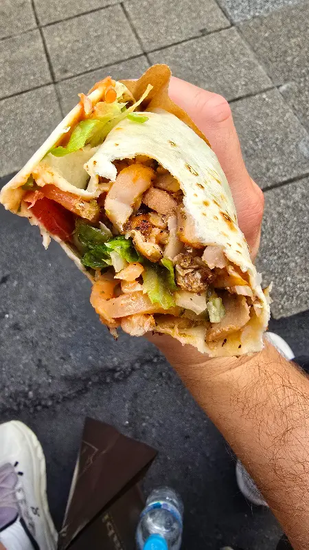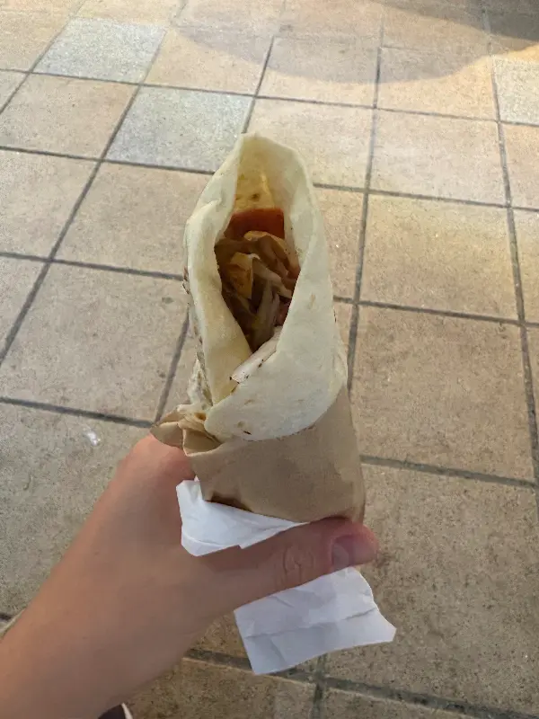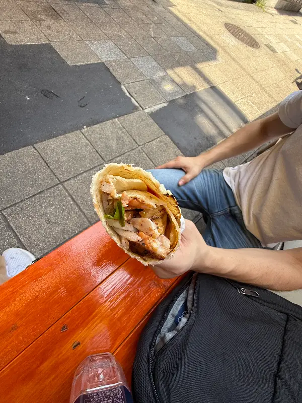 드디어 기다리던 치킨 되너가 나왔다. 노릇하게 구워진 닭고기가 라바쉬 빵 안에 가득 차 있었다. 신선한 채소와 특제 소스가 더해져, 보기만 해도 군침이 돌았다.