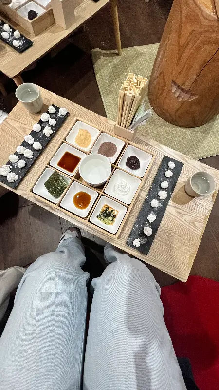 체험 장소에 도착하자, 아늑하고 따뜻한 분위기가 느껴졌습니다. 나무로 만들어진 테이블과 의자는 편안함을 더했고, 은은한 조명은 공간을 더욱 포근하게 만들어주었습니다. 스텝분들은 밝은 미소로 저희를 맞이해주셨고, 유창한 영어로 모찌의 역사와 만드는 과정에 대해 자세히 설명해주셨습니다. 특히 한국어가 가능한 스텝분이 계셔서 아이도 어려움 없이 체험에 참여할 수 있었습니다.