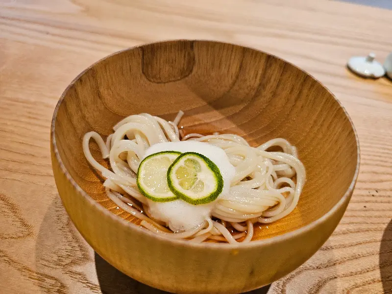 음식을 입에 넣는 순간, ‘정말 맛있다’라는 감탄사가 절로 나왔다. 간은 자극적이지 않았지만, 재료 본연의 맛을 최대한 살린 섬세한 맛이었다. 특히, 한국에서는 흔히 볼 수 없는 식재료들을 맛볼 수 있다는 점이 특별했다. Image 2에 보이는 것처럼, 깔끔한 우동 한 그릇도 평범함을 거부하는 맛이었다.