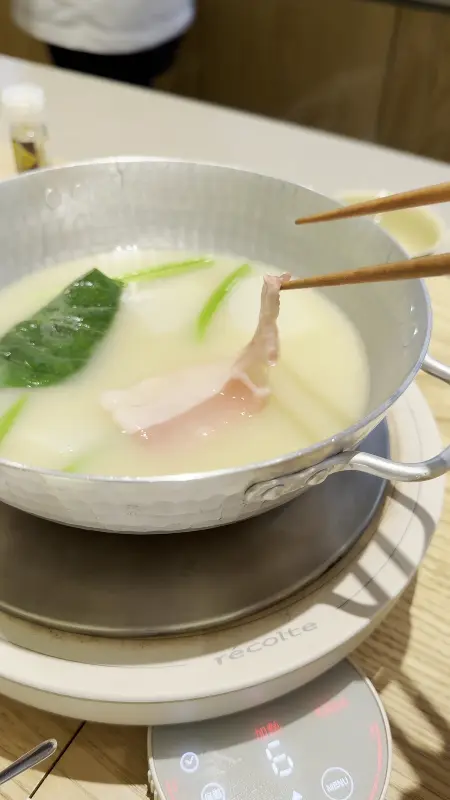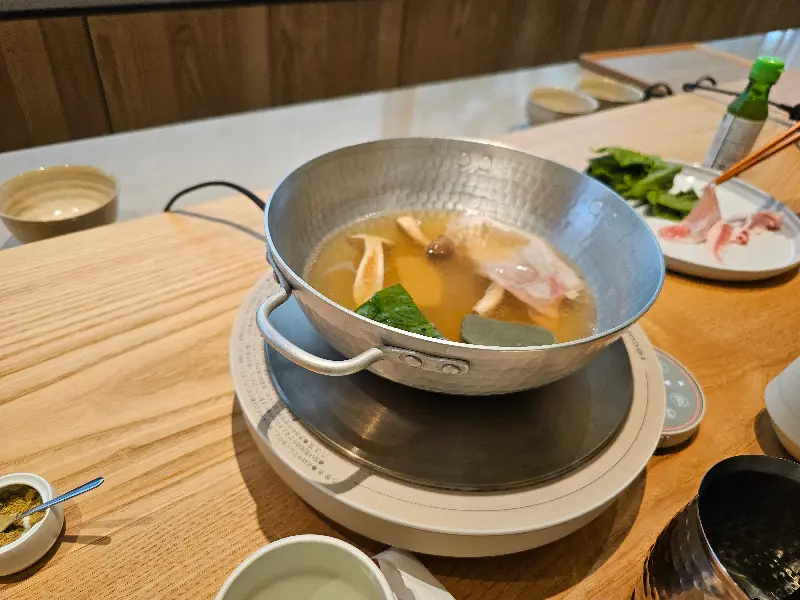 샤브샤브는 사케지게미와 백미소 육수로 만들어졌다고 한다. Image 3에서 보이는 것처럼, 육수에 돼지고기를 살짝 담갔다가 먹으니, 입 안에서 사르르 녹는 듯했다. 돼지고기의 식감도 훌륭했고, 육수의 깊고 풍부한 맛은 정말 일품이었다. 특히, 미소 된장국과 함께 먹으니 더욱 맛있었다.
