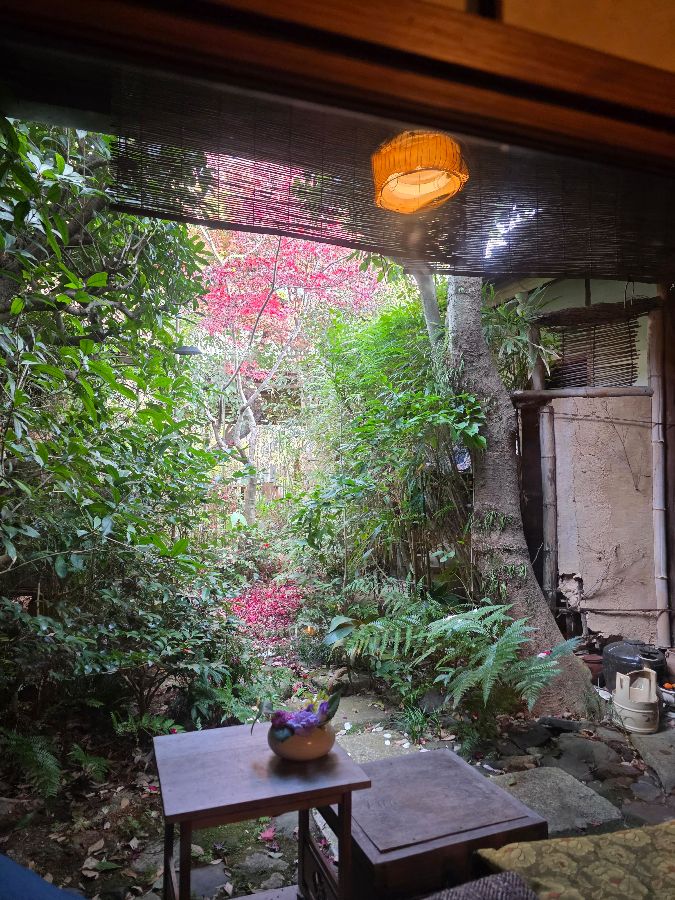 문을 열고 들어서는 순간, 바깥의 번잡함은 온데간데없이 사라지고 고요함이 가득한 세계가 펼쳐집니다. 이곳은 낡았지만 깊은 사연을 품고 있는 일본 전통 가옥으로, 왠지 모르게 기묘하면서도 매력적인 분위기를 자아냅니다. 예상치 못한 광경에 잠시 숨을 멈추게 됩니다. 마루에 앉아 창밖을 바라보면, 정성스레 가꾼 작은 정원이 시야 가득 들어옵니다. 초록빛 잎사귀들이 햇살을 받아 반짝이고, 계절의 변화를 알리는 붉은 단풍잎들이 조화롭게 어우러져 한 폭의 그림 같습니다. 이러한 풍경은 눈으로 즐기는 것만으로도 충분한 힐링을 선사합니다.