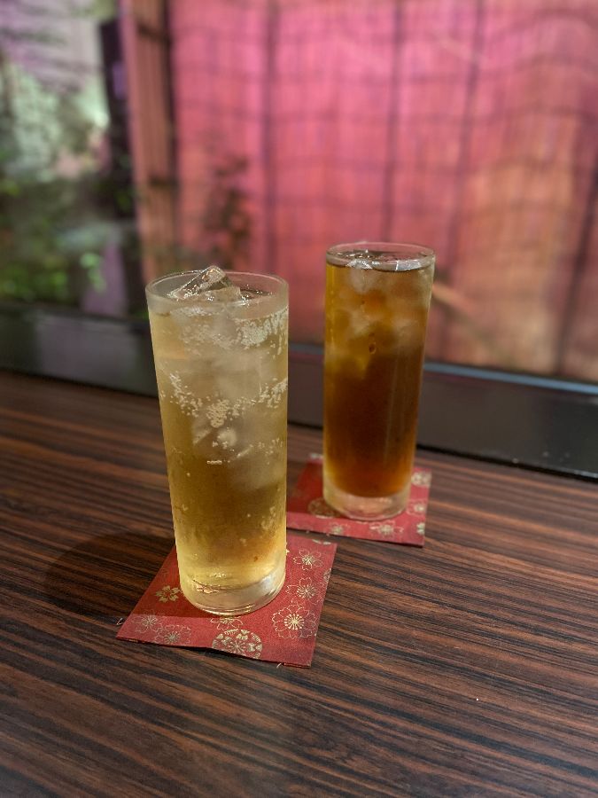 자리에 앉아 메뉴를 펼쳤다. 다행히 영어 메뉴가 준비되어 있었지만, 일어 메뉴와 함께 보는 것이 더 다양한 선택지를 제공한다는 정보를 입수! 파파고 번역기의 도움을 받아 메뉴를 탐색하기 시작했다. 음료 주문은 필수. 우롱하이볼과 진저에일을 주문하고, 설레는 마음으로 음식을 기다렸다.