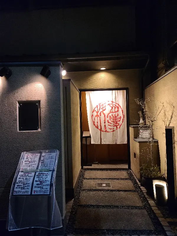 저녁 식사를 위해 교토의 조용한 주택가를 헤매다 우연히 발견한 “하후우(hahuu)”. 붉은 글씨가 새겨진 흰 천이 드리워진 입구는 마치 비밀스러운 미식의 세계로 초대하는 듯했습니다. 문을 열고 들어서자 활기찬 분위기가 느껴졌고, 은은한 조명 아래 따뜻함이 감도는 공간이 눈에 들어왔습니다.
