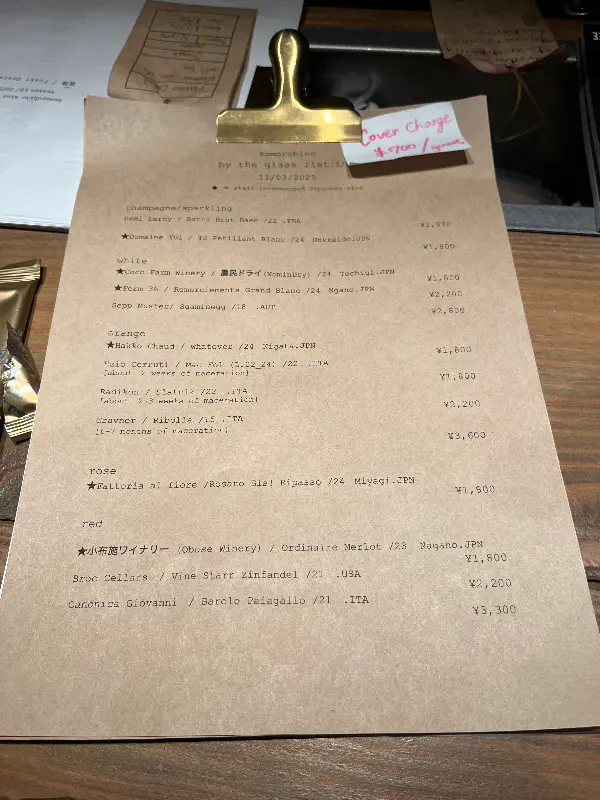 일본어를 잘 못하는 저에게 Komorebino는 한 줄기 빛과 같았습니다. 직원분께서 유창한 영어로 소통해주셔서 편안하게 와인을 즐길 수 있었습니다. 미국에서 생활하신 경험이 있으신 덕분에 언어 장벽 없이 즐거운 대화를 나눌 수 있었고, 와인에 대한 지식과 추천은 저의 선택을 더욱 풍요롭게 만들어주었습니다. 원하는 음악을 틀어주는 섬세한 배려까지, Komorebino는 단순히 와인을 마시는 공간을 넘어, 마음까지 편안해지는 특별한 경험을 선사했습니다.