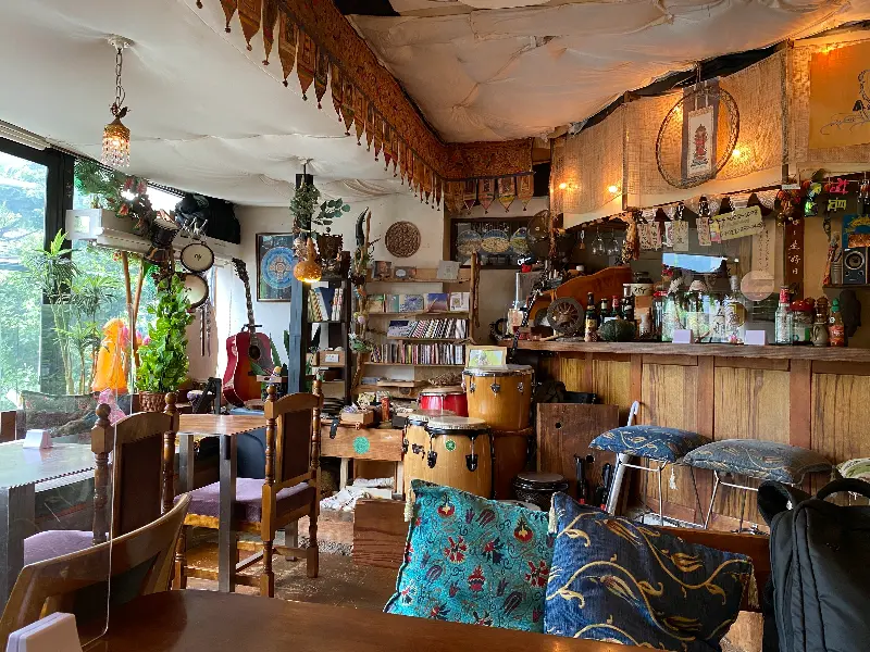 문을 열고 들어선 순간, 눈 앞에 펼쳐진 풍경은 예상했던 것 이상이었다. 요가적이고 다르마적인 분위기가 느껴지는 이국적인 공간은, 마치 다른 세계에 온 듯한 느낌을 주었다. 전 세계에서 수집한 듯한 진귀한 물건들이 아기자기하게 놓여 있었고, 은은한 조명 아래 편안한 분위기가 감돌았다.