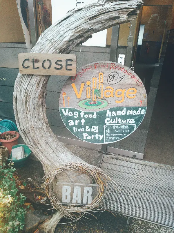 데마치야나기 역에서 내려 30분 정도 걸었을까. 굽이굽이 이어진 골목길을 따라 걷다 보니, 드디어 ‘Village Natural Food’라는 나무 간판이 눈에 들어왔다. 낡은 듯 정감 있는 간판은 이곳이 오랜 시간 동안 사람들에게 사랑받아온 공간임을 짐작하게 했다.
