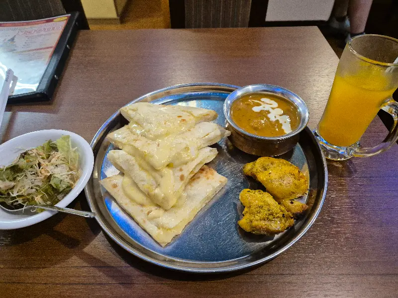 세트 메뉴에는 샐러드와 작은 치킨도 함께 나왔다. 샐러드는 신선했고, 치킨은 겉은 바삭하고 속은 촉촉했다. 특히, 큼지막한 크기를 자랑하는 난은 한 번 리필이 가능하다는 점이 매력적이었다. 배가 불렀지만, 플레인 난의 맛이 궁금해 리필을 요청했다. 갓 구워져 나온 따끈한 플레인 난은 쫄깃하면서도 담백했다. 카레에 찍어 먹어도 맛있고, 그냥 먹어도 맛있었다.