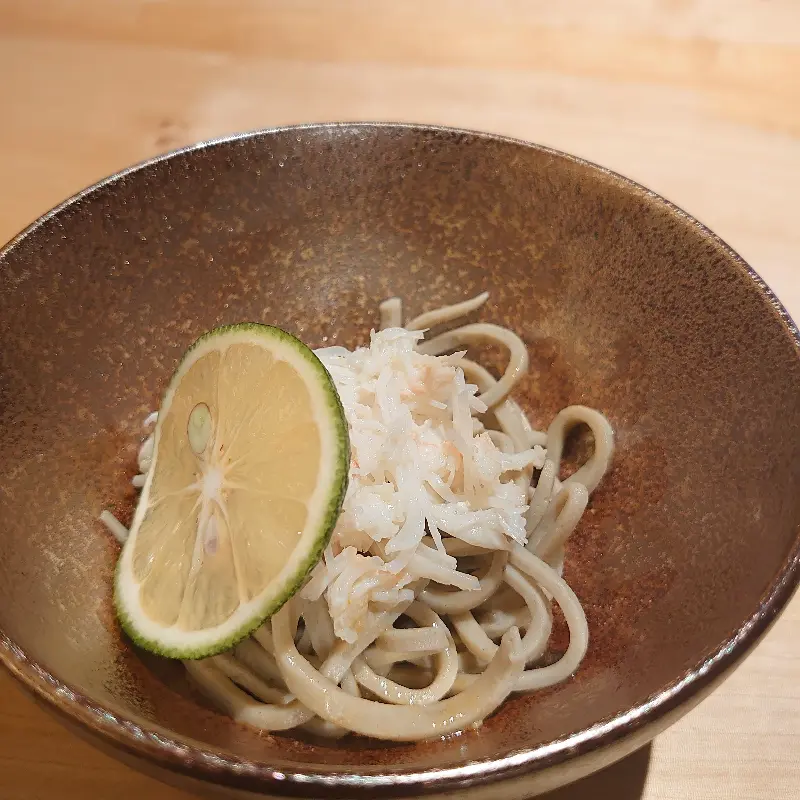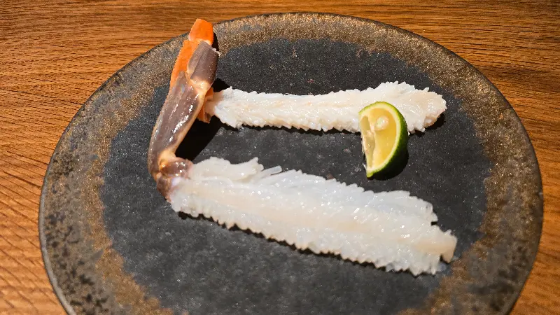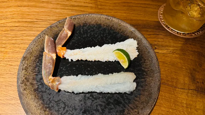 다음으로 나온 것은 신선한 게 사시미였다. 투명한 빛깔의 게살은 마치 수정처럼 맑고 깨끗했다.