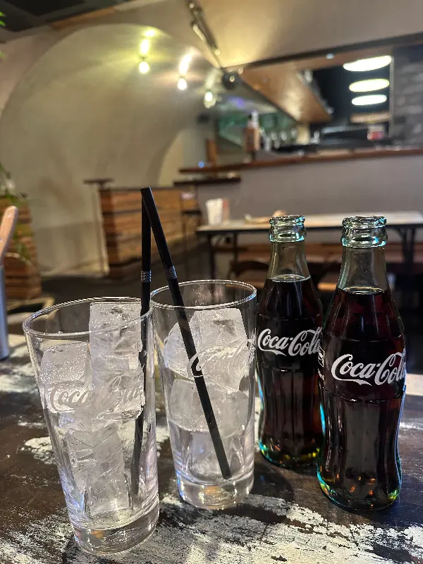 주문한 음료가 먼저 나왔다. 투명한 유리컵에 가득 담긴 얼음과 코카콜라 병의 조화는 그 자체로도 시원함을 느끼게 한다. 톡 쏘는 탄산이 갈증을 해소해주고, 곧 나올 햄버거에 대한 기대감을 높인다.