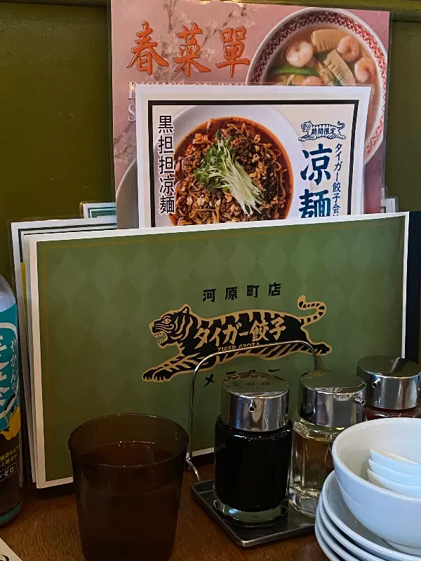 교토 여행 중 우연히 발견한 타이거교자. 좁은 골목길 안쪽에 자리 잡은 이곳은, 마치 숨겨진 보물을 발견한 듯한 기분을 선사했습니다. 가게에 들어서자, 아늑하면서도 세련된 분위기가 눈에 띄었습니다.
