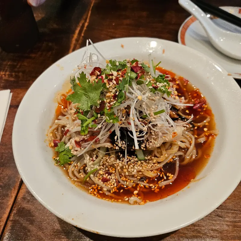 가장 먼저 맛본 것은 바로 마라교자였습니다. 짙은 색감에서부터 느껴지는 강렬함. 한 입 베어 무는 순간, 입안 가득 퍼지는 마라의 얼얼한 매운맛이 정신을 번뜩 들게 했습니다. 톡 쏘는 듯한 알싸함과 함께 느껴지는 깊은 풍미는, 정말 잊을 수 없는 맛이었습니다.