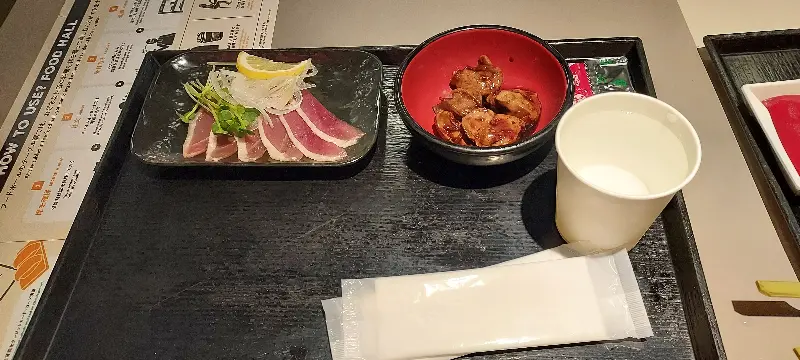 한참을 고민하다가, 교토에 왔으니 일본 음식을 맛봐야겠다는 생각에 교자와 야키소바를 선택했다. 푸드 홀 중앙에 마련된 테이블에 자리를 잡고, 주문한 음식이 나오기를 기다렸다. 테이블 위에는 각 상점의 메뉴와 함께 푸드 홀 이용 안내가 적혀 있었다. 각자 마음에 드는 음식을 골라 자유롭게 테이블에서 즐길 수 있다는 점이 푸드 홀의 가장 큰 매력인 것 같다.