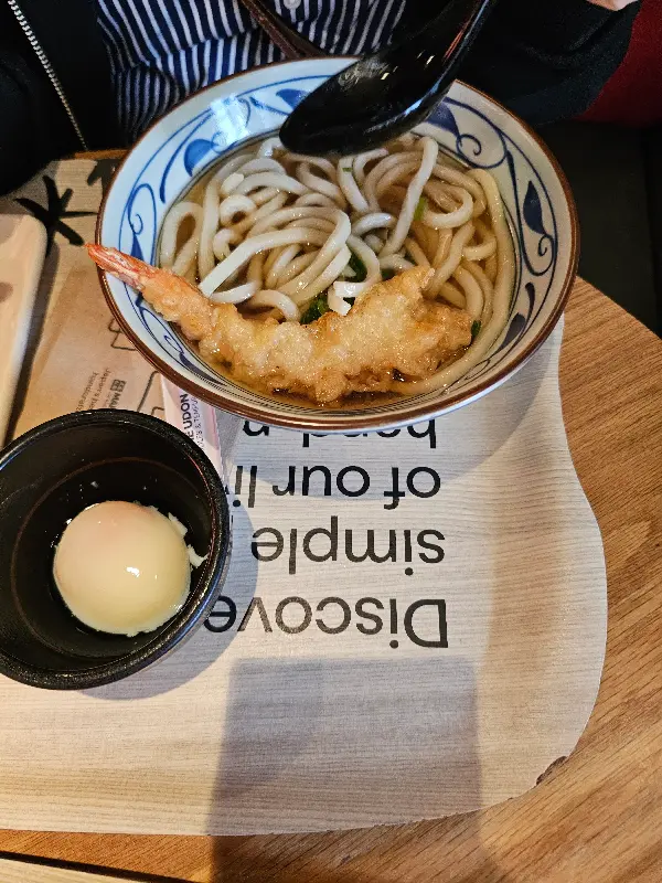 낯선 런던의 거리, 웅장한 건물들 사이를 걷다 문득 따뜻한 국물이 그리워질 때, 마루가메 우동(Marugame Udon)은 오아시스 같은 존재입니다. 깔끔한 인테리어와 활기찬 분위기는 발걸음을 이끌고, 갓 뽑은 면과 정성껏 우려낸 육수는 지친 여행자의 몸과 마음을 녹여줍니다.