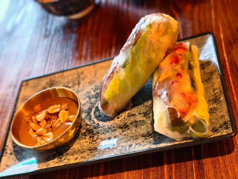 쌀국수와 함께 주문한 감바스 스프링롤은 예상 밖의 맛을 선사합니다. 겉은 바삭하고 속은 촉촉한 스프링롤 속에 새우의 풍미가 가득 느껴집니다. 특히 함께 제공되는 소스에 찍어 먹으면, 매콤하면서도 달콤한 맛이 입안을 즐겁게 합니다. “갓 튀긴 감바스 스프링롤, 맛있는 감바스 샐러드, 향긋하게 구운 레몬그라스 스틱이 좋았고…” 한 방문객의 리뷰처럼, 이곳에서는 익숙한 재료를 활용한 색다른 메뉴를 맛볼 수 있습니다.